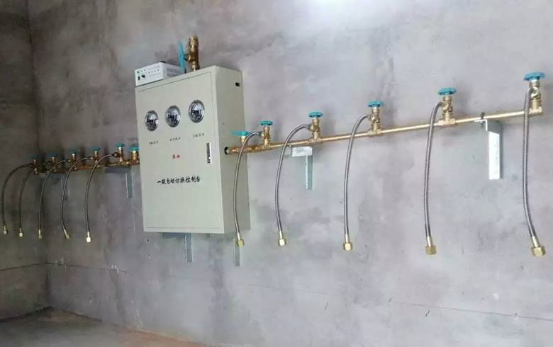 1、氧源部分:根據用氧量的大小來選擇氧氧,一般情況下,匯流排即可滿足用氧需求,采用2、3、4、5瓶為一組共二組,其中一組使用一組備用,每瓶均有截止閥,當一組氣瓶壓力低于規(guī)定范圍時能自動聲光報警。通過把氧氣減壓至0.2~0.4MPa(可調)后,經過病區(qū)氧氣管道輸送到病房終端,最后通過濕化器上流量調節(jié)開關再次減壓后供病人吸氧。用氧量稍大一些的可以選用分子篩制氧機供氧。