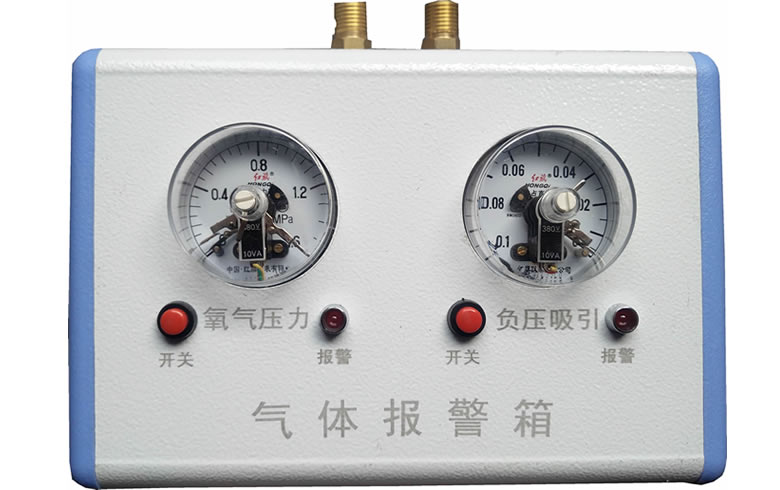 2、報警箱裝置:在護士站安裝報警箱,當送往大樓的氧氣壓力升高或下降超出規(guī)定值時,報警箱同樣發(fā)出聲光報警信號,提醒有關人員及時處理。