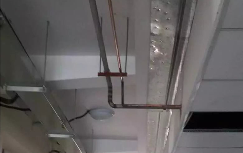 3、氧氣輸送管道:氧氣輸送管道連接氧源及各終端,供氧管道在各個用氣點的吊頂內安裝,干管安裝在獨立的管井內。管路的布設應避開柱子,主管道經氣體管井至走廊支管去病房,走廊支管布置在吊頂內。各病房的引入管由該層病區(qū)吊頂內走廊支管上引出,進入病房至治療帶前部分管道用PVC線槽扣住,起到保護管路及美觀的效果。管道穿越樓板或墻壁時應加套管,套管直徑比管道直徑大二個規(guī)格。在套管內的管段部分不能有焊縫及連接接頭。主管路到達用氧樓層,以最短的設計走向將氧氣輸送到各個病房、手術室等,并以多種吸氧形式供病人吸氧。氧氣管路接地電阻小于100歐姆。