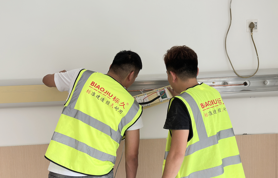 五、病房床頭醫(yī)用設備帶的安裝步驟如下: 根據(jù)實際情況確定設備帶安裝的具體位置,一般安裝在病房床邊上方的墻上,距離地面1.3m-1.5m處,方便使用。 根據(jù)墻體的建筑使用材質(zhì)來決定固定方式,如果是普通混泥土或磚墻可以用膨脹栓或者鋼釘來固定;如果是輕鋼龍骨石膏板,可以采用自攻絲龍骨來固定或者用飛機膨脹螺栓固定;如果墻體是泡沫輕體磚,一般用密度較高的多個膨脹栓固定。如果遇到背靠背的房間,可以采用對穿固定,這樣會更加牢固。 設備帶表面噴塑做處理,不僅美觀而且耐磨,易清潔。