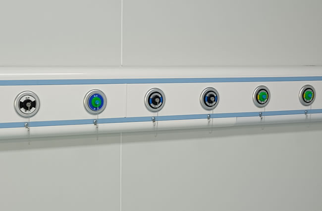 病房床頭吸氧設(shè)備:氧氣由氧氣供應(yīng)室通過管道及管道設(shè)備減壓穩(wěn)壓處理后輸送到病房床頭和各用氧點,至病房的氧氣壓力一般為0.4MPa左右,在病房床頭安裝自封式氧氣終端,連接快插式氧氣濕化瓶就可以使用了,至此一套完整的醫(yī)院中心吸氧系統(tǒng)裝置就完成了。