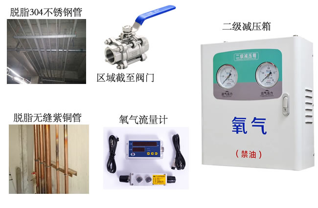 醫(yī)用氧氣管道:醫(yī)院中心吸氧系統(tǒng)管道根據(jù)行業(yè)技術(shù)規(guī)范可采用脫脂無縫銅管和脫脂304不銹鋼管,在氧氣站房和每個樓層病區(qū)的區(qū)域設(shè)置閥門方便后期檢修。在每個病區(qū)根據(jù)需要還應(yīng)該設(shè)置二級減壓箱,作用是預防一級減壓裝置故障,保障病房氧氣管道壓力始終為低壓狀態(tài)。根據(jù)需要還可以設(shè)置氧氣質(zhì)量流量計,方便核算每個區(qū)域的氧氣使用量。
